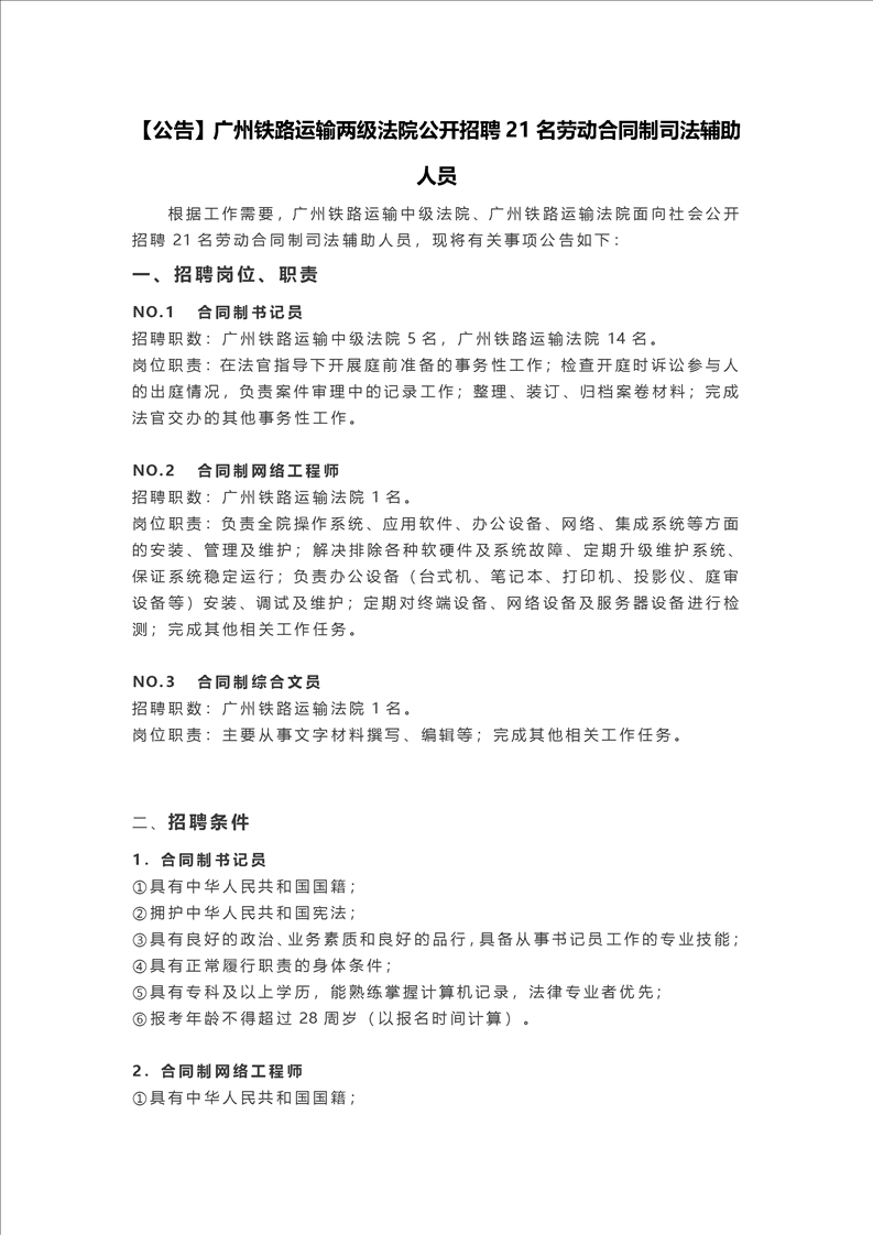2021年廣州鐵路運輸兩級法院公開招聘21名勞動合同制司法輔助人員公告