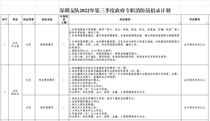 2022年第三季度深圳市消防救援支隊政府專職消防員招聘公告
