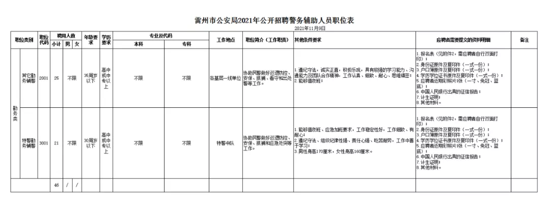 附件:雷州市公安局2021年公開招聘警務輔助人員職位表