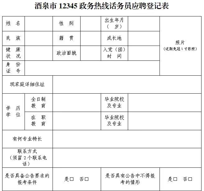 附件:《酒泉市12345政務熱線話務員應聘登記表》