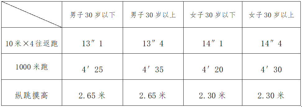 3.體能測評上述3個項目,凡其中一項不達(dá)標(biāo)的,視為體能測評不合格,不進(jìn)入體檢程序。