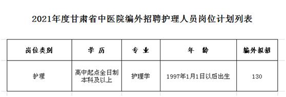 6、具備崗位要求的其他條件(見下《2021年度甘肅省中醫(yī)院編外護(hù)理招聘人員崗位計劃列表》)。