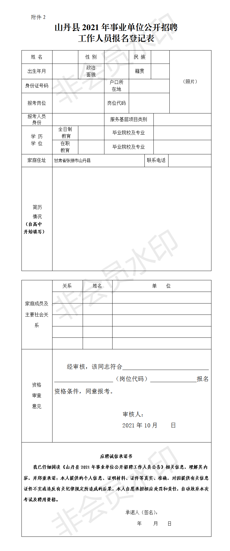 2.《山丹縣2021年事業(yè)單位公開招聘工作人員報名登記表》