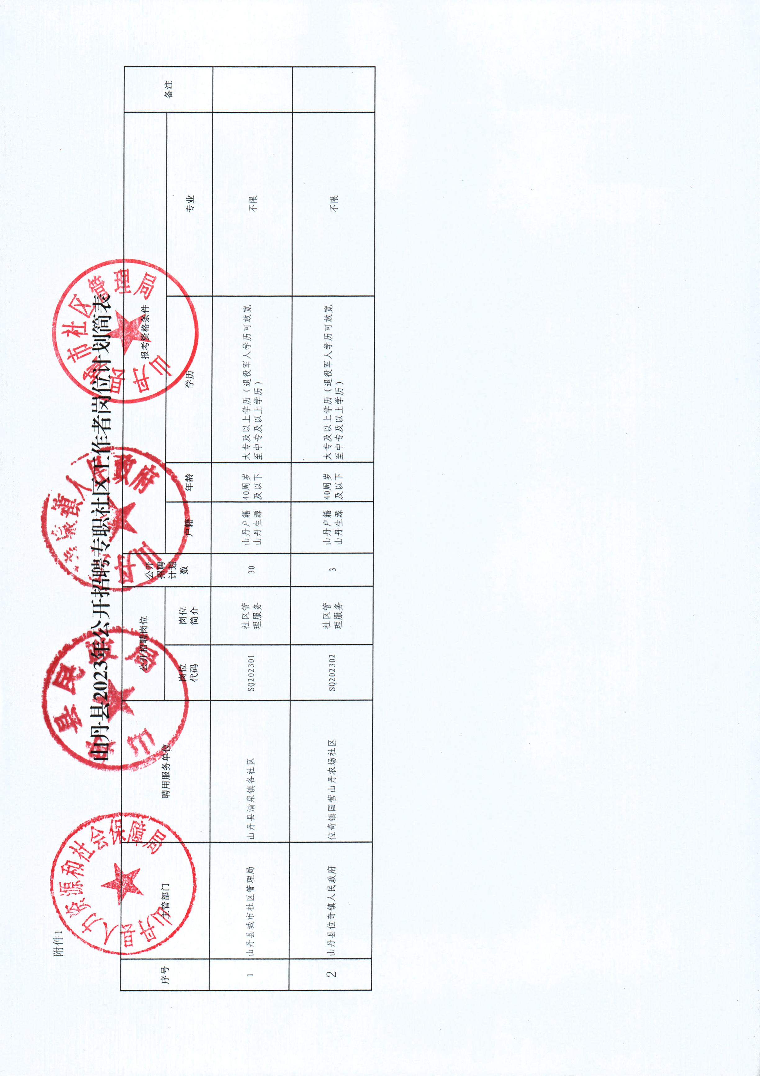 根據(jù)我縣城市管理工作實(shí)際和社區(qū)工作力量配備情況,計(jì)劃公開招聘專職社區(qū)工作者33人,具體招聘計(jì)劃詳見《山丹縣2023年公開招聘專職社區(qū)工作者崗位計(jì)劃簡表》(附件1,以下簡稱《崗位簡表》)。