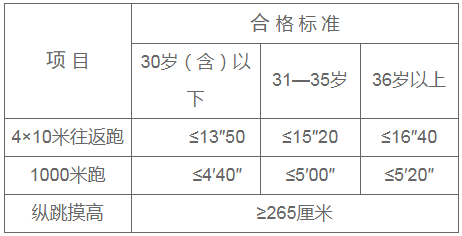 報考人員須參加全部三項體能測評,其中兩項達(dá)標(biāo)方為合格,如放棄一項則視為不合格。體能測評合格的方可進(jìn)入下一環(huán)節(jié)。