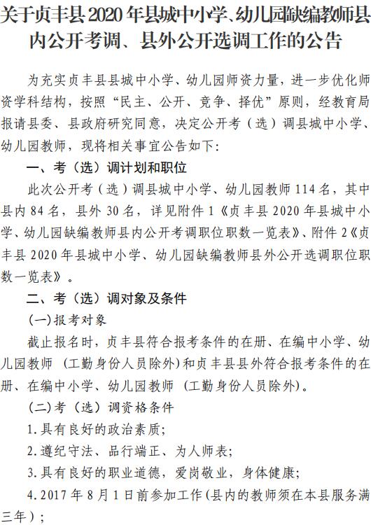 2020年黔西南貞豐縣縣城中小學(xué)、幼兒園缺編教師縣內(nèi)公開(kāi)考調(diào)、縣外公開(kāi)選調(diào)工作公告