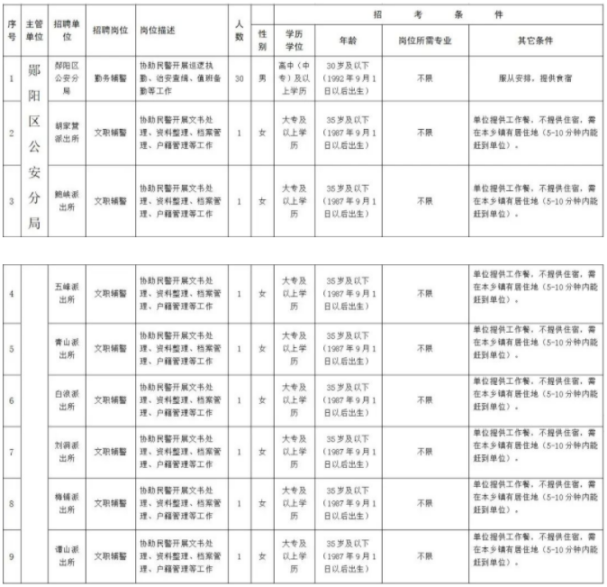 十堰市公安局鄖陽(yáng)區(qū)分局招聘警務(wù)輔助人員職位表