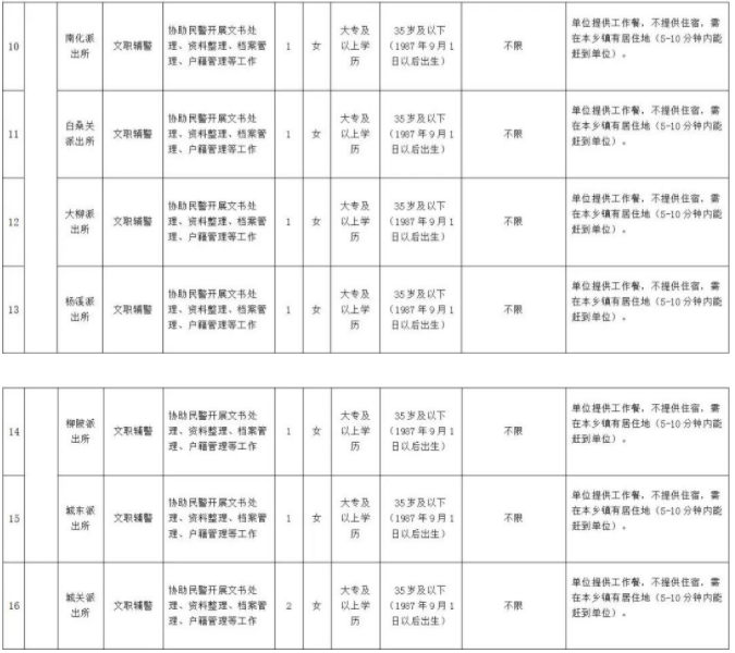 2.文職輔警16人,女性,協(xié)助民警開(kāi)展文書(shū)處理、資料整理、檔案管理、戶籍管理等工作。
