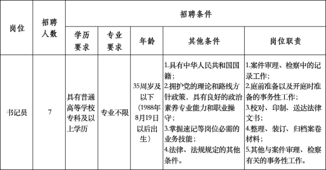 2024-08-20 20:48:44閱讀()石家莊公共招聘網(wǎng)為進(jìn)一步加強(qiáng)書記員隊伍建設(shè),現(xiàn)根據(jù)有關(guān)規(guī)定,為石家莊高新區(qū)檢察院面向社會公開招聘派遣制書記員7名,現(xiàn)將有關(guān)事項公告如下:
