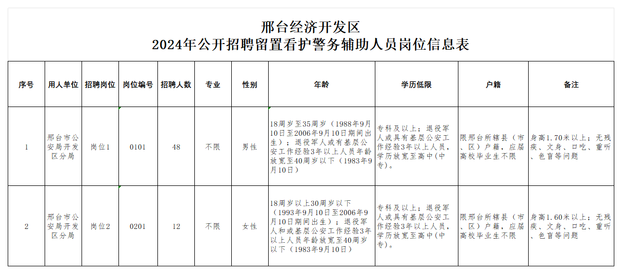 2024年邢臺(tái)經(jīng)濟(jì)開(kāi)發(fā)區(qū)公開(kāi)招聘留置看護(hù)警務(wù)輔助人員公告