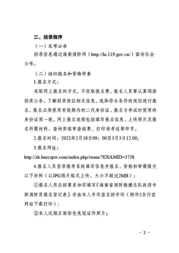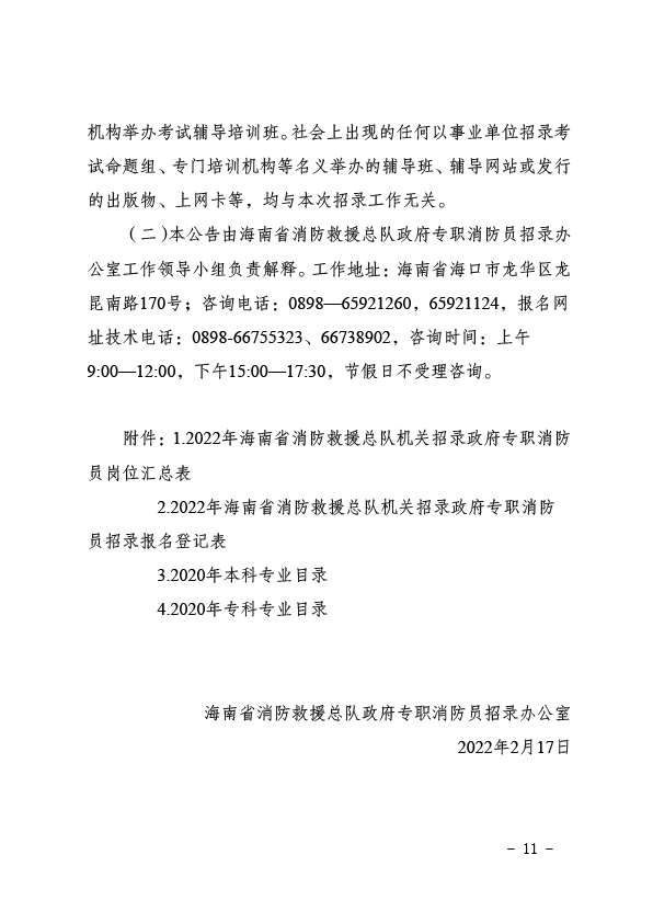 2022年海南省消防救援總隊(duì)機(jī)關(guān)招錄政府專職消防員公告(第1號)