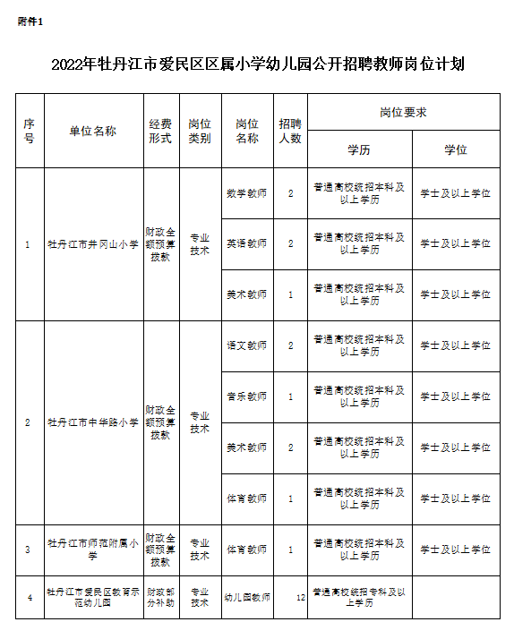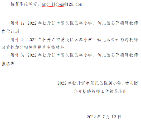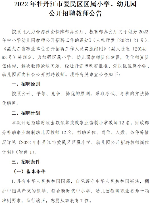2022年牡丹江市愛民區(qū)區(qū)屬小學、幼兒園公開招聘教師公告
