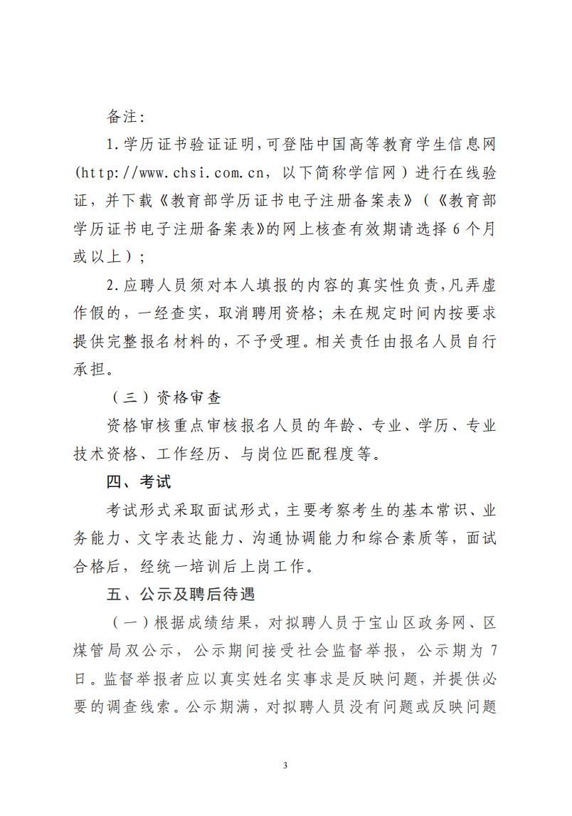 2024-01-27 22:43:14閱讀()雙鴨山市寶山區(qū)人民政府按照雙鴨山市駐礦監(jiān)督員管理工作要求,為切實提高我區(qū)駐礦監(jiān)督管理相關(guān)工作,寶山區(qū)煤炭生產(chǎn)安全管理局面向社會公開招聘工作人員?,F(xiàn)就具體事項公告如下: