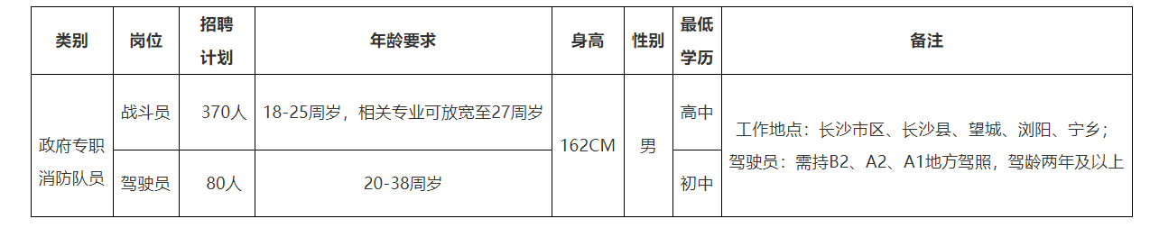 2022-09-14 11:31:55閱讀()長沙市人力資源和社會保障局為有效履行防范化解重大安全風險、應對處置各類災害事故的職責使命,提升全市消防救援隊伍應急救援能力,經(jīng)長沙市人民政府批準同意,長沙市消防救援支隊面向社會公開招聘450名政府專職消防員,具體招聘方案公告如下: