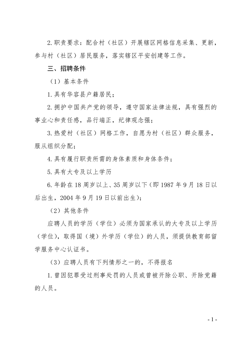 2022-09-14 11:19:19閱讀()華容縣人民政府根據(jù)《岳陽市城鄉(xiāng)村(社區(qū))網(wǎng)格化服務(wù)管理實施方案》(岳辦[2017]5號)文件精神,經(jīng)報請縣委同意,縣委政法委書記辦公會議研究,決定面向社會公開招聘網(wǎng)格員,現(xiàn)將有關(guān)事項公告如下: