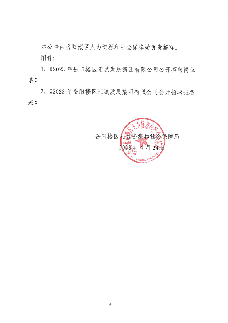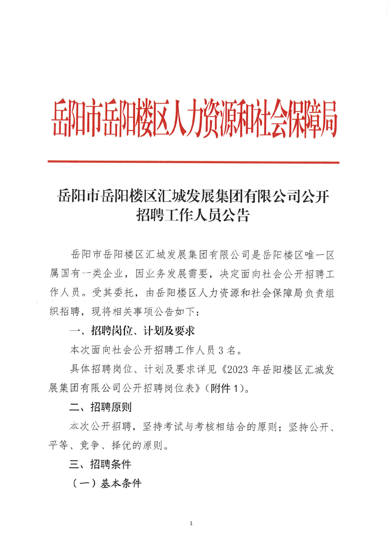 具體招聘崗位、計(jì)劃及要求詳見(jiàn)《2023年岳陽(yáng)樓區(qū)匯城發(fā)展集團(tuán)有限公司公開(kāi)招聘崗位表》(附件1)。