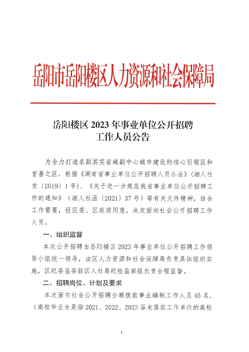 2023年岳陽(yáng)市岳陽(yáng)樓區(qū)事業(yè)單位公開(kāi)招聘工作人員公告