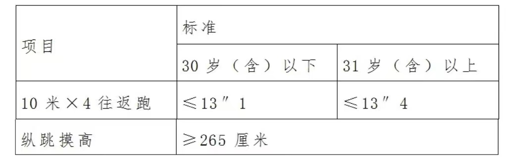 3.體能測試項(xiàng)目和標(biāo)準(zhǔn):