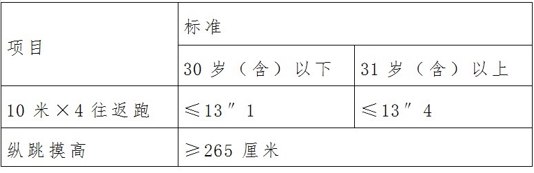 1.體能測試入圍人員:資格復(fù)審合格人員參加體能測試。