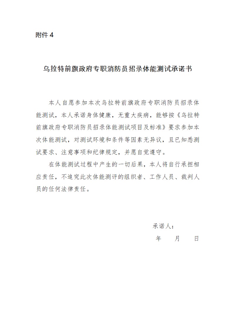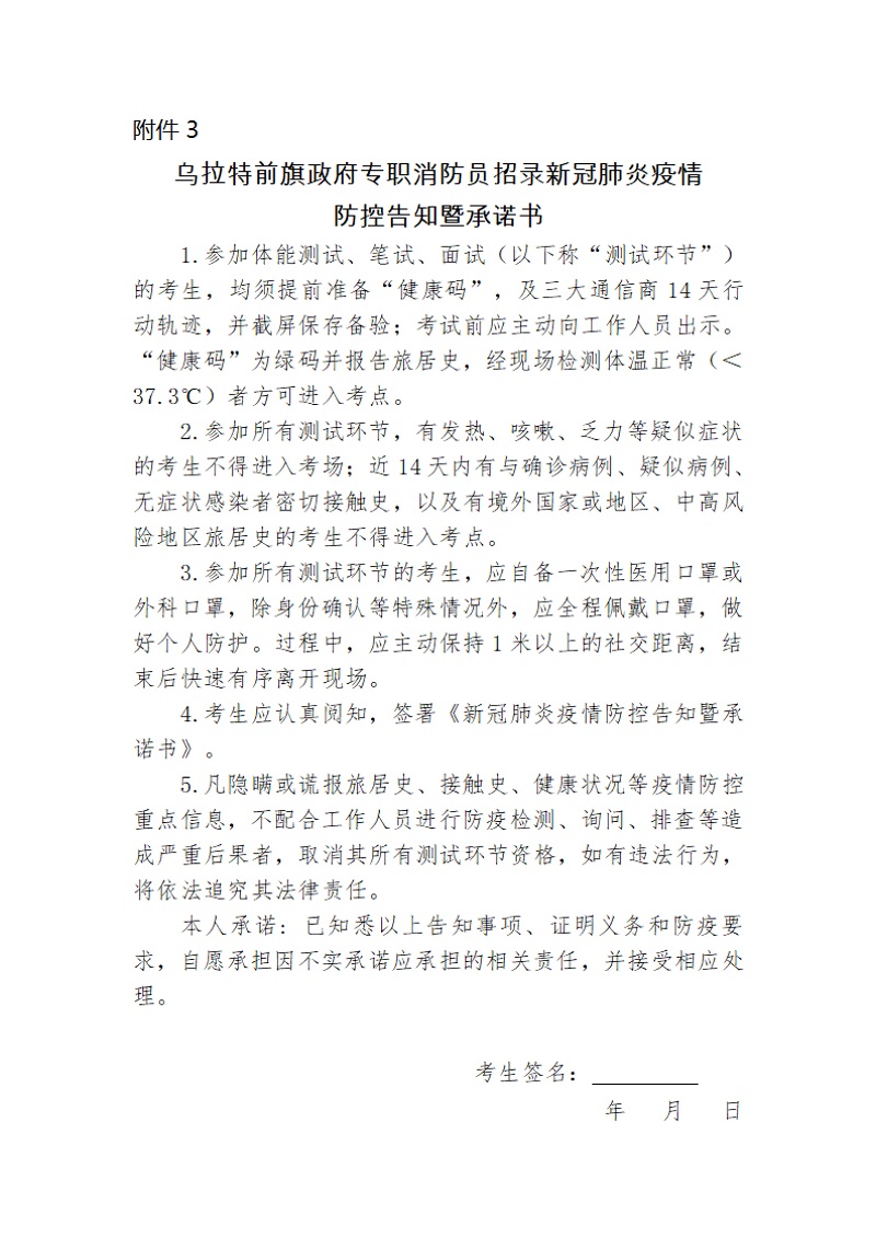 3.《烏拉特前旗政府專職消防員招錄新冠肺炎疫情防控告知暨承諾書》;