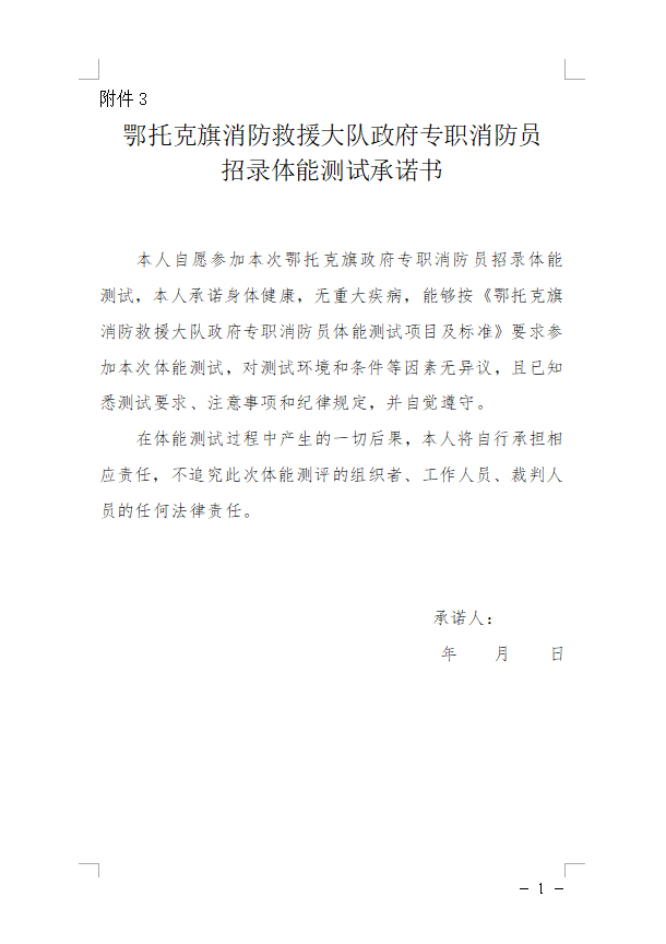 (二)報(bào)考政府專職消防隊(duì)員崗位的年齡為18至30周歲(1993年7月9日至2006年7月9日生人),男性,達(dá)到《鄂托克旗消防救援大隊(duì)政府專職消防員招錄體能測試項(xiàng)目及標(biāo)準(zhǔn)》(附件2),需具有高中及以上文化程度,退役、復(fù)轉(zhuǎn)軍人和有2年及以上消防救援工作經(jīng)歷人員年齡可放寬到35周歲。
