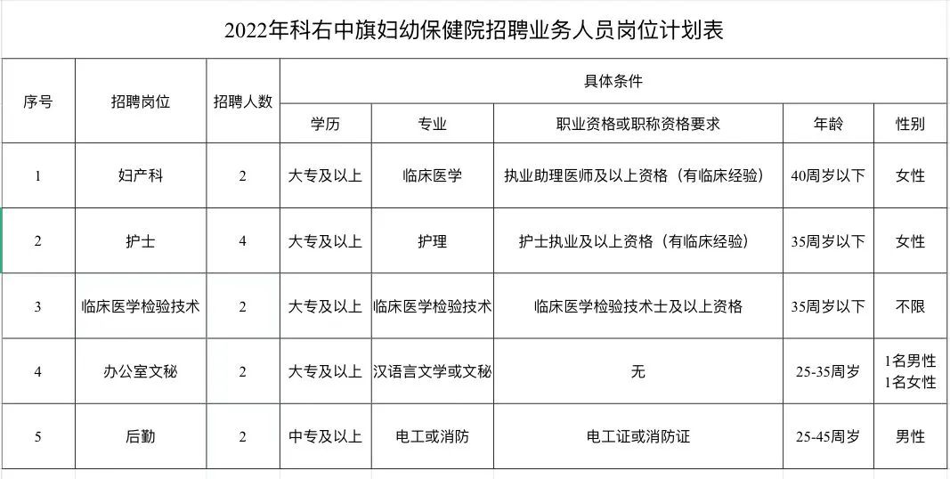2022年興安盟科右中旗婦幼保健院公開招聘專業(yè)技術(shù)人員公告