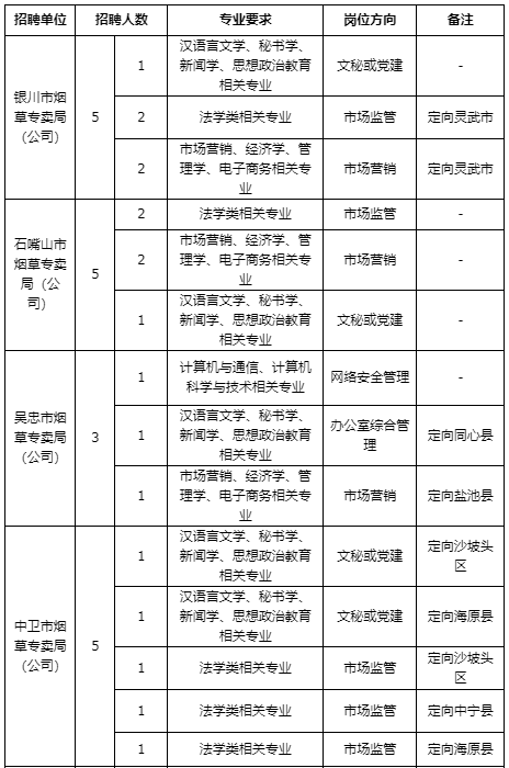 3.本次招考政策由寧夏區(qū)煙草專賣局(公司)保留最終解釋權。