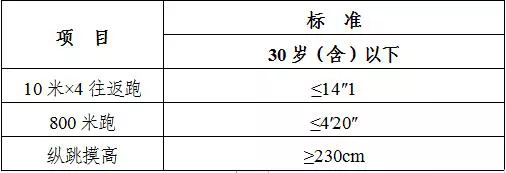 (二)體能測評的內(nèi)容和要求。體能測評參照《公安機(jī)關(guān)錄用人民警察體能測評項(xiàng)目和標(biāo)準(zhǔn)(暫行)》(人社部發(fā)〔2011〕48號(hào))、國家公務(wù)員局《關(guān)于明確公安機(jī)關(guān)人民警察體能測評次數(shù)的函》(國公局函〔2012〕1號(hào))相關(guān)要求執(zhí)行。共設(shè)三項(xiàng):男子1000米跑和女子800米跑(測評次數(shù)均為1次)、10米×4往返跑(測評次數(shù)不超過2次)、縱跳摸高(測評次數(shù)不超過3次)。體能測評的三個(gè)項(xiàng)目中有任何一項(xiàng)不合格或違規(guī),視為體能測評不合格。