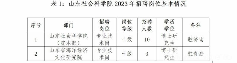 2023年,結(jié)合事業(yè)發(fā)展需要,我院擬公開招聘13名專業(yè)技術(shù)中級(jí)崗位(專業(yè)技術(shù)十級(jí)崗)人員(含山東省海洋經(jīng)濟(jì)文化研究院3人)。如表1所示: