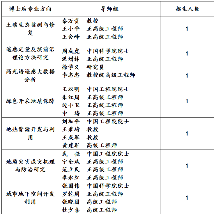 2021-10-22 20:29:00閱讀()陜西省地質(zhì)調(diào)查院陜西省地質(zhì)調(diào)查院為省政府直屬公益一類事業(yè)單位,主要承擔(dān)全省公益性、基礎(chǔ)性、戰(zhàn)略性地質(zhì)調(diào)查工作。2018年,經(jīng)人力資源和社會保障部、全國博士后管理委員會批準(zhǔn),陜西省地質(zhì)調(diào)查院設(shè)立博士后科研工作站,現(xiàn)面向海內(nèi)外公開招收優(yōu)秀博士后研究人員,歡迎海內(nèi)外獲得博士學(xué)位,品學(xué)兼優(yōu)、身體健康的優(yōu)秀人才加入。現(xiàn)將有關(guān)事項公告如下:
