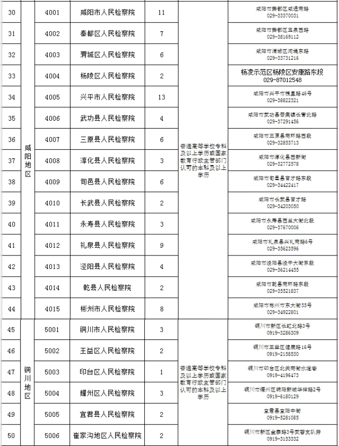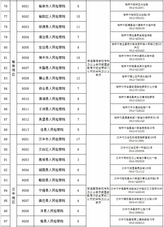 6.需要咨詢報考招聘相關問題的,可撥打電話029-85221858,029-87378431或各相關檢察院聯(lián)系電話(見附件),進行政策咨詢(工作日上午8:30-12:00,下午14:00-17:30)。