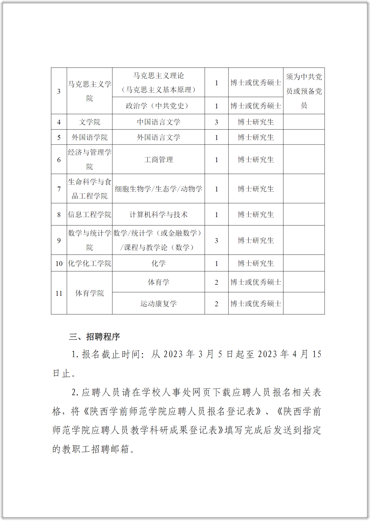 2023年陜西學前師范學院教師崗位招聘簡章
