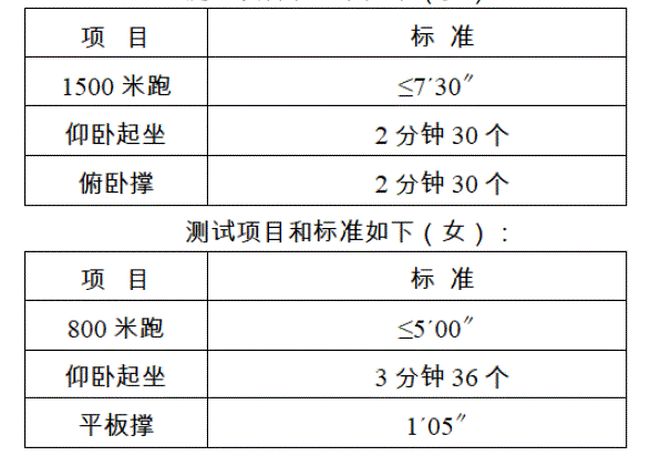(1)體能測試時(shí)間和地點(diǎn):以準(zhǔn)考證為準(zhǔn);