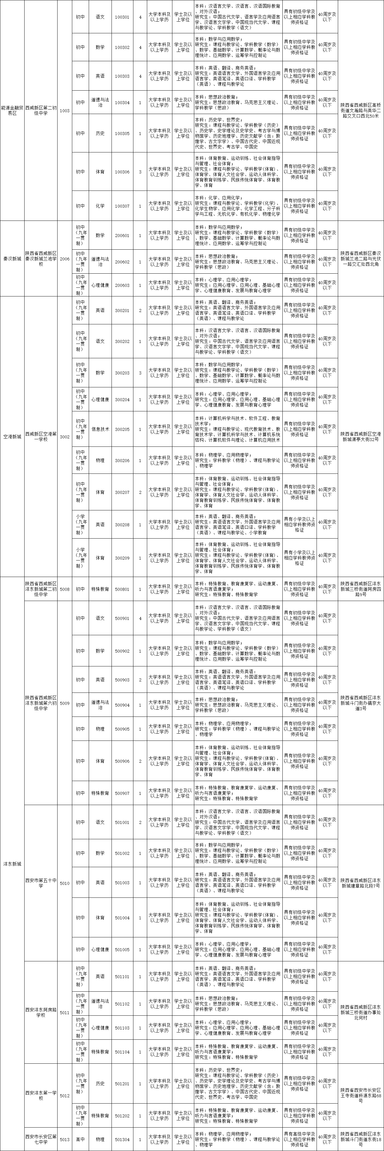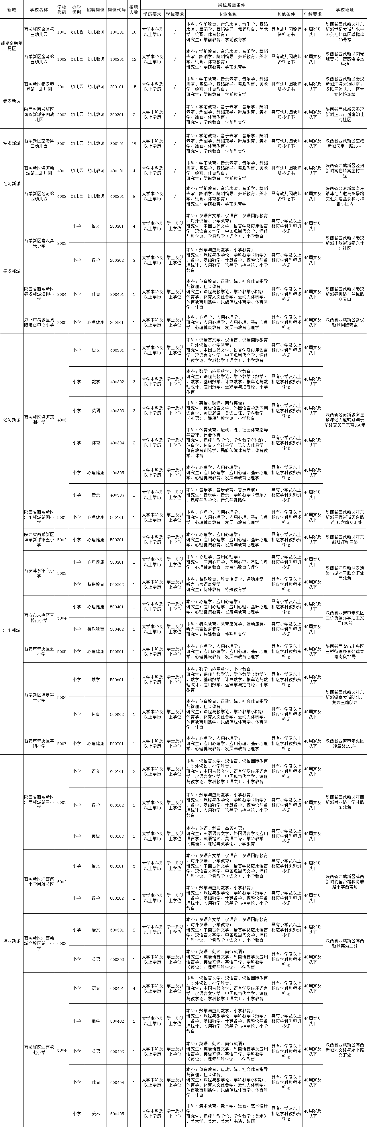 西咸新區(qū)2025年教育系統(tǒng)公開(kāi)招聘崗位需求一覽表(教師崗位190人)
