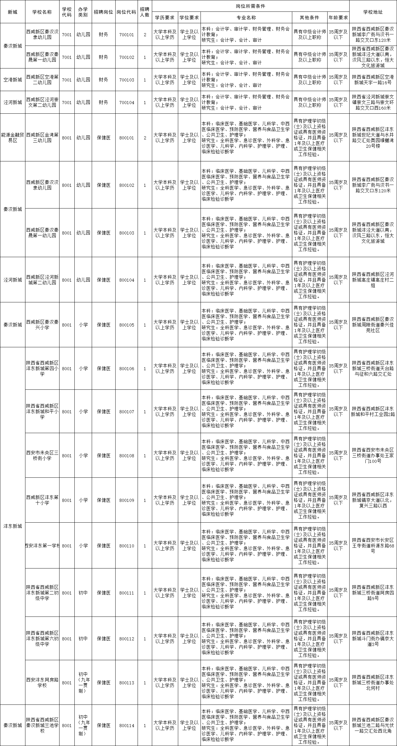 西咸新區(qū)2025年教育系統(tǒng)公開(kāi)招聘崗位需求一覽表(財(cái)務(wù)、保健醫(yī)崗位20人)