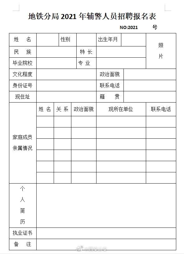 2021年西安市公安局地鐵分局面向社會公開招聘警務輔助人員公告