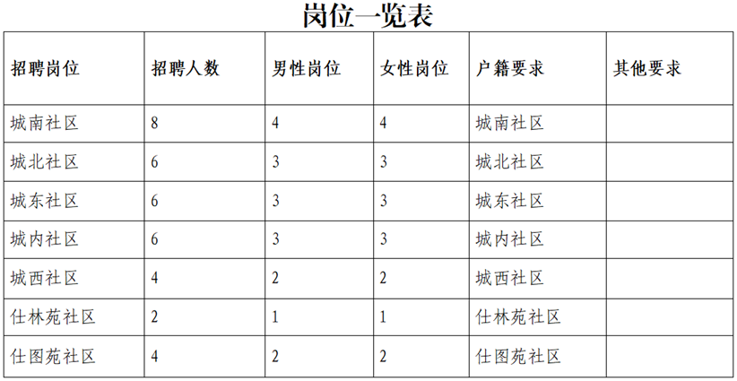 本次招聘用工形式為勞務(wù)派遣。聘用人員與我公司簽訂勞動(dòng)合同,派駐到陵川縣七社區(qū)(城南、城北、城東、城西、城內(nèi)、仕圖苑、仕林苑)工作。