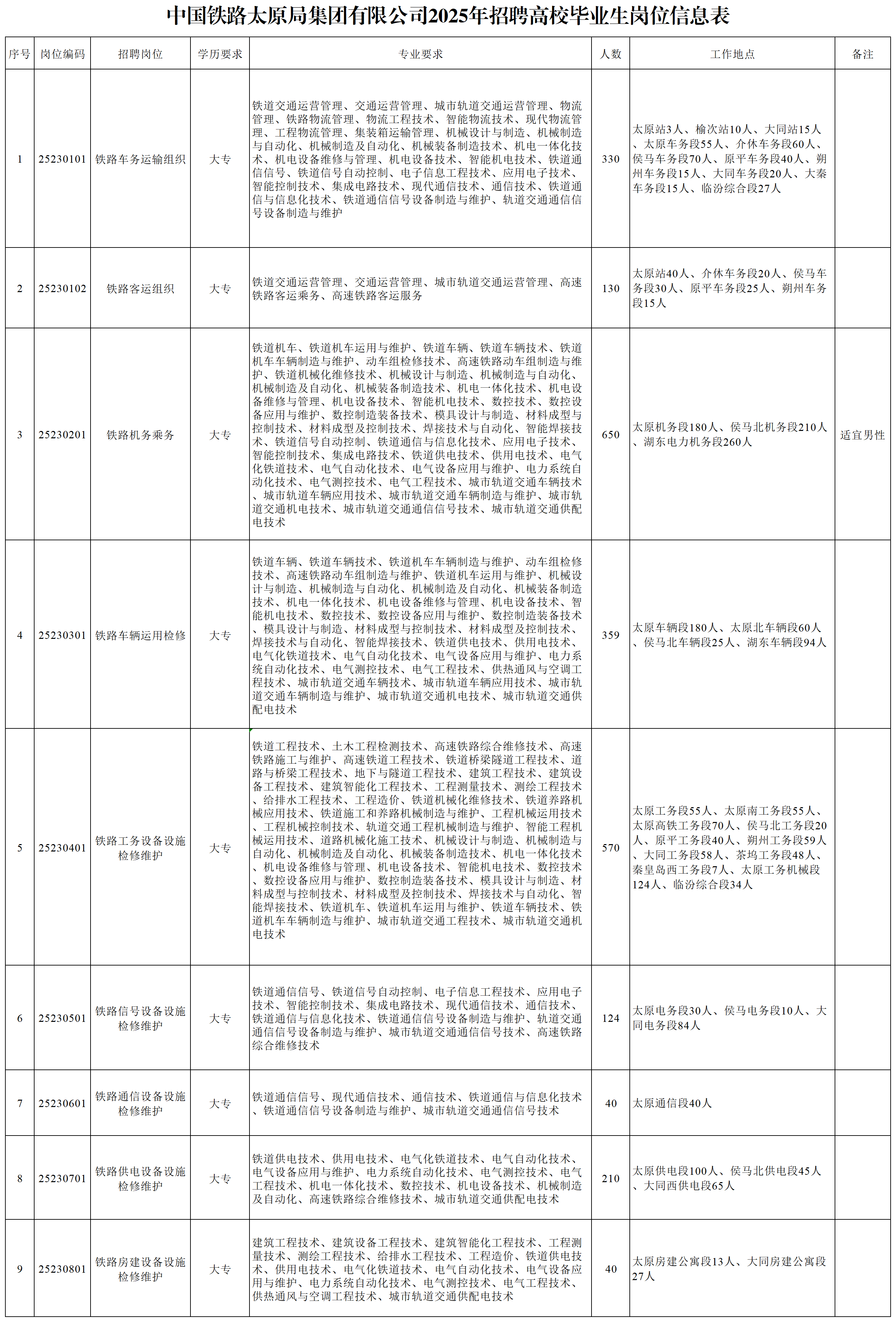 2025年中國鐵路太原局集團有限公司招聘高校畢業(yè)生公告(二)