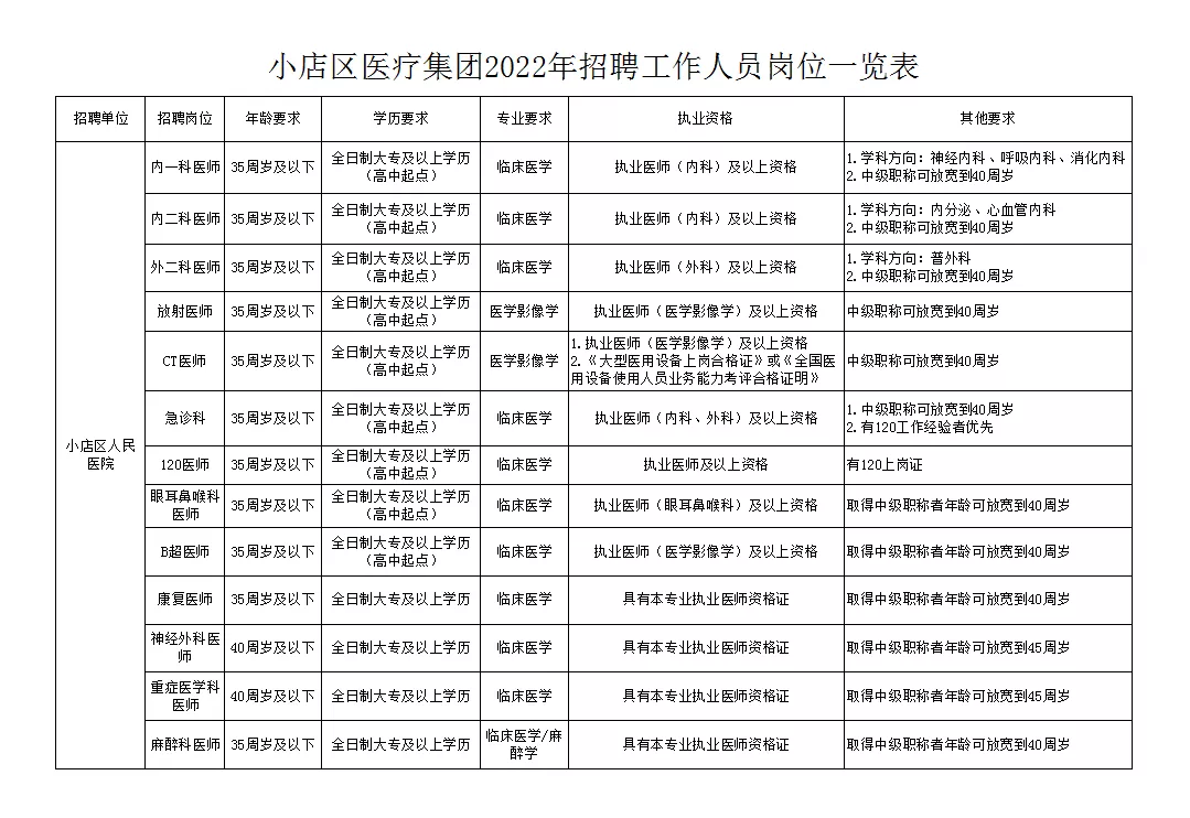 附件1:小店區(qū)醫(yī)療集團2022年招聘工作人員崗位一覽表