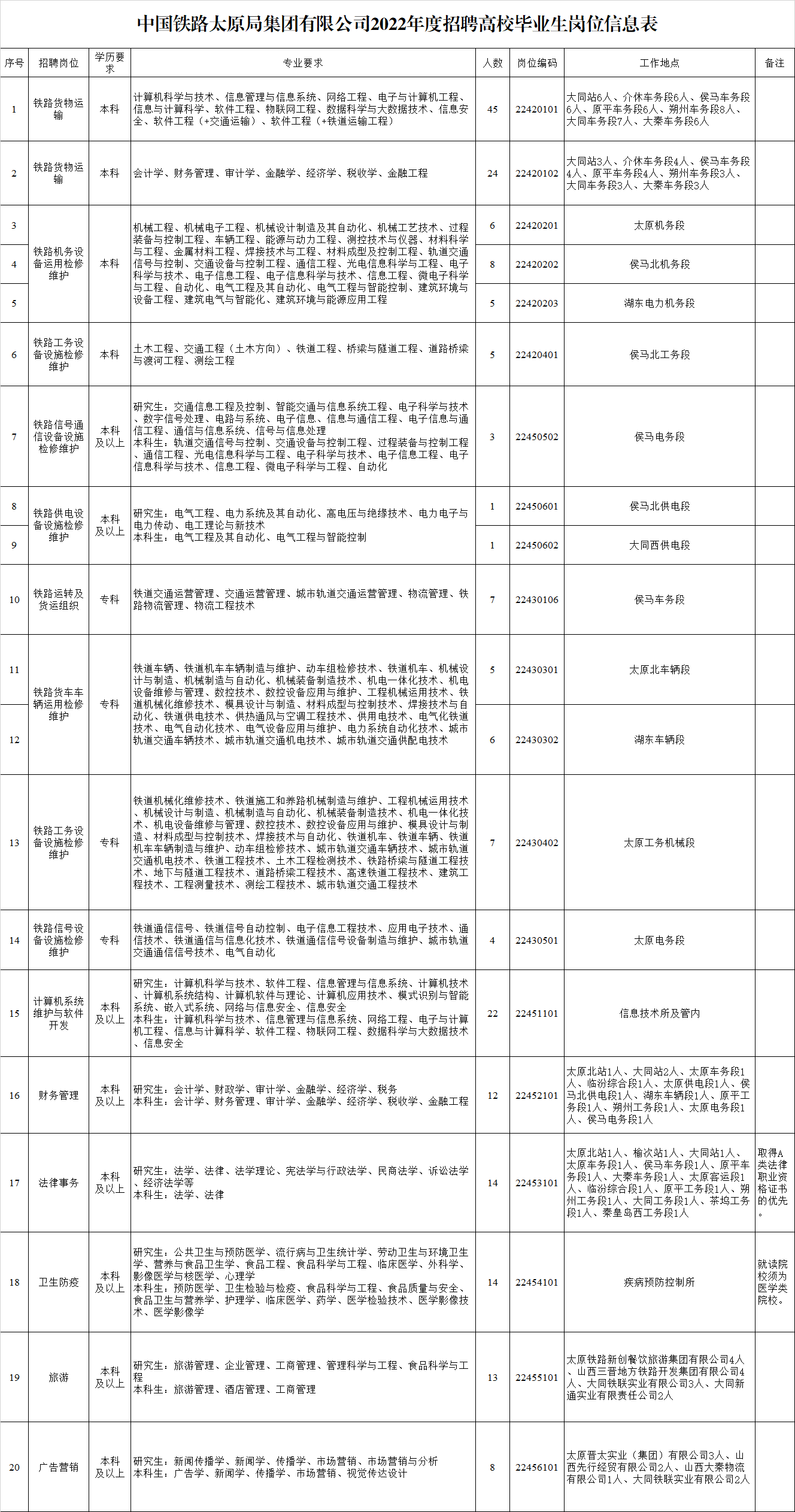 2022年中國(guó)鐵路太原局集團(tuán)有限公司招聘高校畢業(yè)生公告(四)