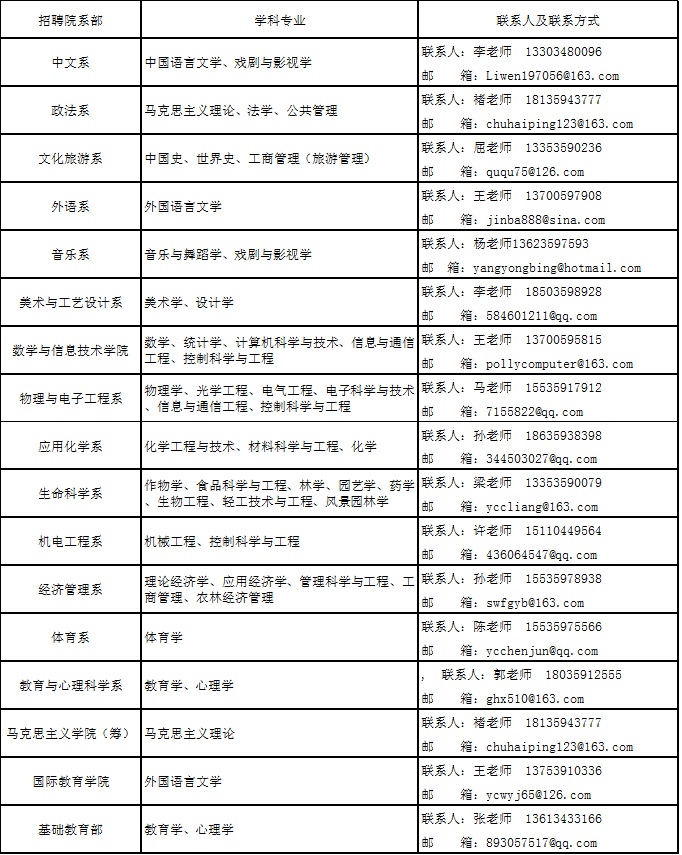 符合條件的國內(nèi)外高校畢業(yè)的博士研究生通過電子郵箱報(bào)名應(yīng)聘,應(yīng)聘人員請將個(gè)人簡歷電子版發(fā)送至各院系部聯(lián)系人電子郵箱和ycxyrsc@ycu.edu.cn。應(yīng)聘者郵件標(biāo)題格式統(tǒng)一要求為:崗位+姓名+性別+學(xué)科(專業(yè))。