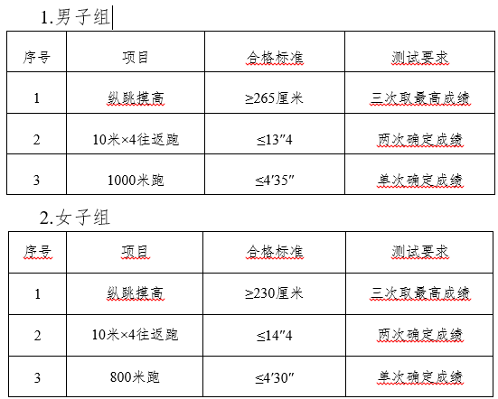 體能測試項目及合格標準如下: