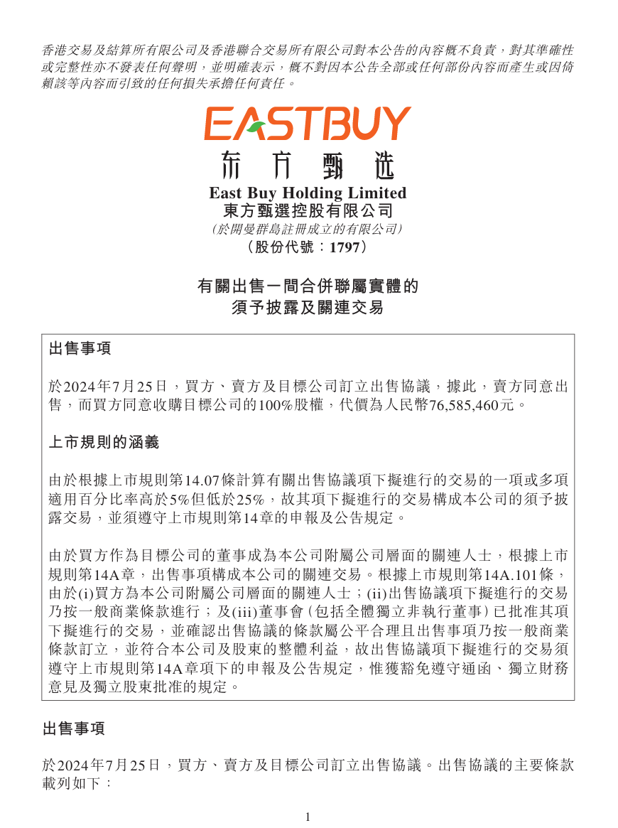 董宇輝(買方)、北京新東方迅程網(wǎng)絡(luò)科技有限公司(賣方)及與輝同行(北京)科技有限公司(目標公司)訂立出售協(xié)議,據(jù)此,賣方同意出售,而買方同意收購目標公司的100%股權(quán),代價為人民幣7658.55萬元。