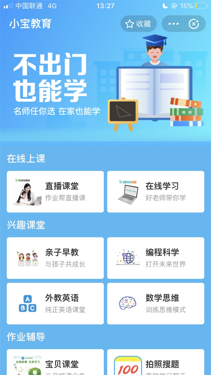 支付寶與阿里云教育聯(lián)合新東方、學(xué)而思、作業(yè)幫、開(kāi)課啦等知名培訓(xùn)機(jī)構(gòu),推出超過(guò)600門免費(fèi)課程,涵蓋幼兒園到高三全年齡段。課程包括小學(xué)、初中、高中的語(yǔ)文、數(shù)學(xué)、英語(yǔ)等學(xué)科教育課程,以及編程、樂(lè)理、思維訓(xùn)練、記憶力訓(xùn)練等素質(zhì)教育課程。上支付寶搜“小寶教育”即可。