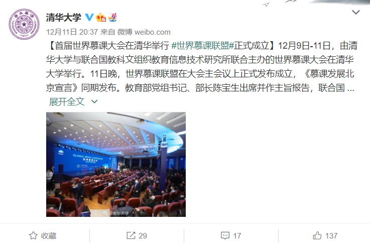 教育部:中國慕課數量和應用規(guī)模已居世界第一,世界慕課聯(lián)盟成立