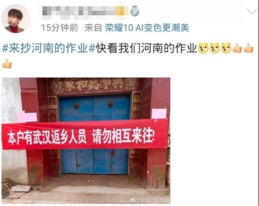 河南的首次上熱搜是因為“硬核”的防疫“作業(yè)”讓其他省份的網(wǎng)友羨慕不已,1月24日“河南硬核”的條目進入微博熱搜前五,同一天,“來抄河南作業(yè)”的熱搜從第17位躍升至第9位。