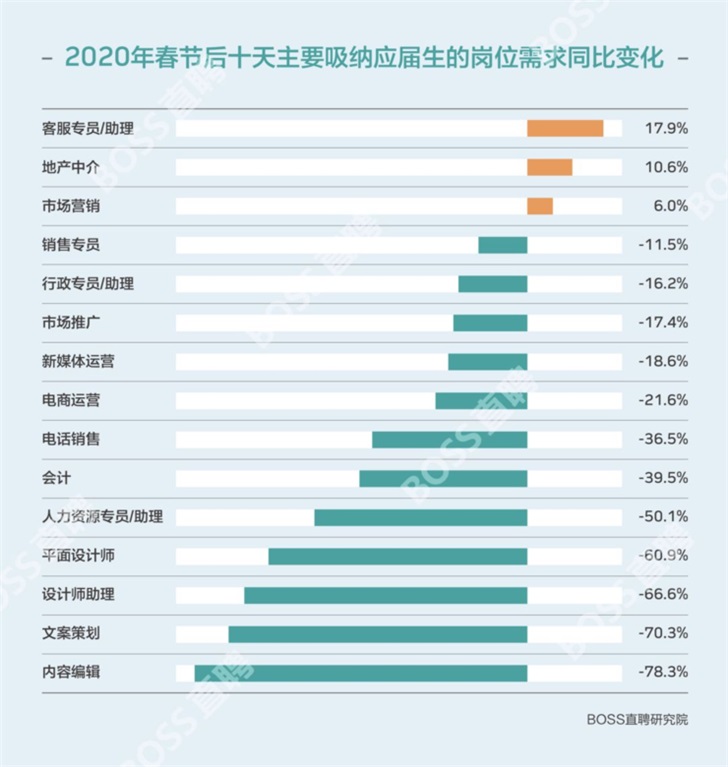 此外,據(jù) BOSS 直聘發(fā)布的《 2020 年春節(jié)后 10 天人才趨勢觀察》顯示,2 月 3 日至 2 月 12 日期間,處于"生死邊緣"的小微企業(yè)對于招聘人才的需求驟減 70% 。