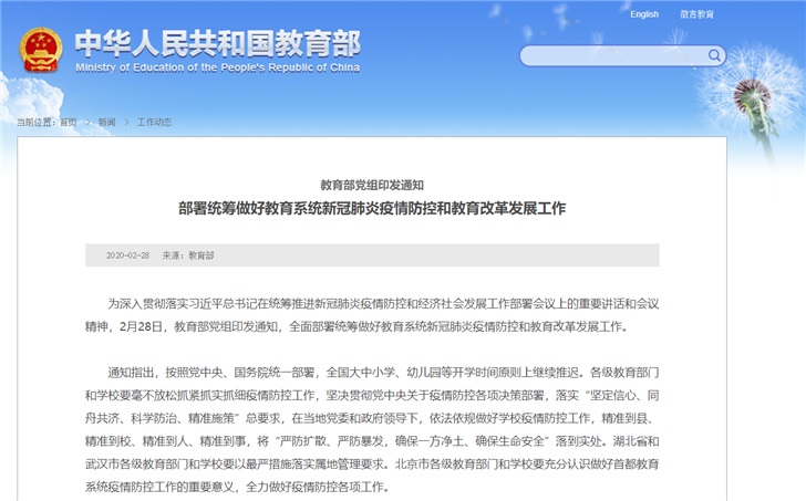 2020-02-29 13:40:22閱讀()教育部昨日教育部黨組印發(fā)了《部署統(tǒng)籌做好教育系統(tǒng)新冠肺炎疫情防控和教育改革發(fā)展工作》的文件,其中對(duì)目前在線教育存在的問題做了進(jìn)一步規(guī)范。