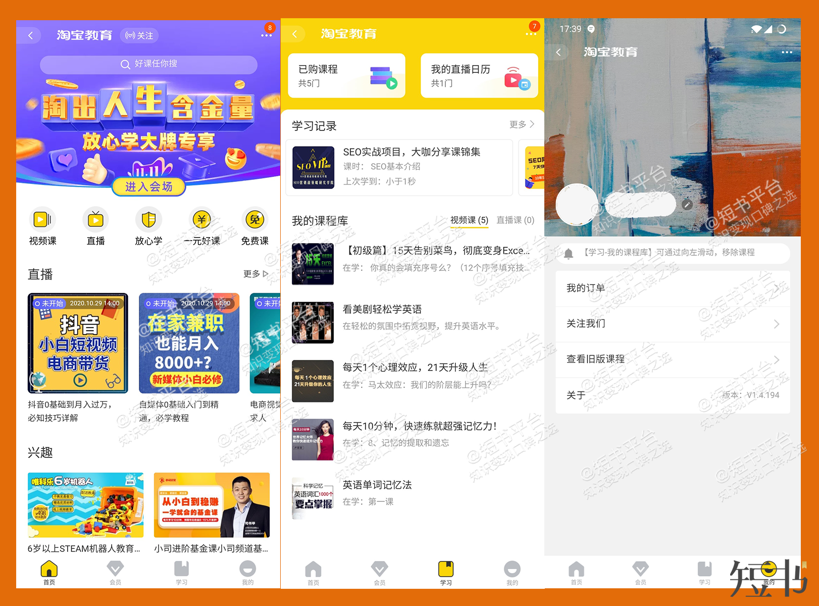 而淘寶目前的產(chǎn)品形態(tài)對(duì)比市面類似“短書”“小鵝通”教育SaaS產(chǎn)品,后者可能更加適合教育場(chǎng)景。后者的產(chǎn)品形態(tài)可以兼顧到整個(gè)學(xué)員的生命周期:直播、課程、社群、專欄、訓(xùn)練營(yíng)等內(nèi)容和服務(wù)形態(tài)更加的完善,深入到更加的垂直領(lǐng)域的場(chǎng)景。