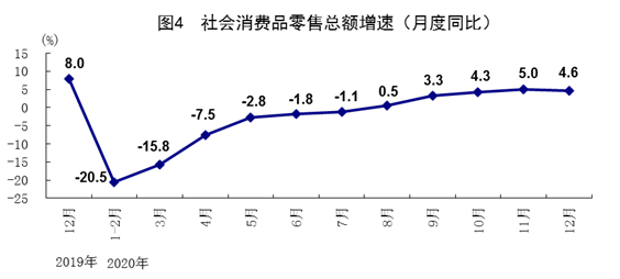 根據(jù)第四次全國經(jīng)濟普查結(jié)果對2019年社會消費品零售總額進行了修訂,2020年月度增速按照可比口徑計算。